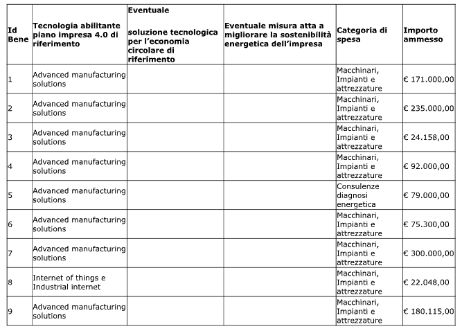 Il progetto di investimento oggetto di domanda è stato relativo ad un ampliamento della capacità produttiva inerente un’unità produttiva di Padova. L’investimento ha avuto lo scopo di aumentare la capacità produttiva rispondendo ad una domanda di mercato in netta progressione positiva. Di seguito si riportano nel dettaglio gli investimenti che sono stati effettuati nel presente programma: