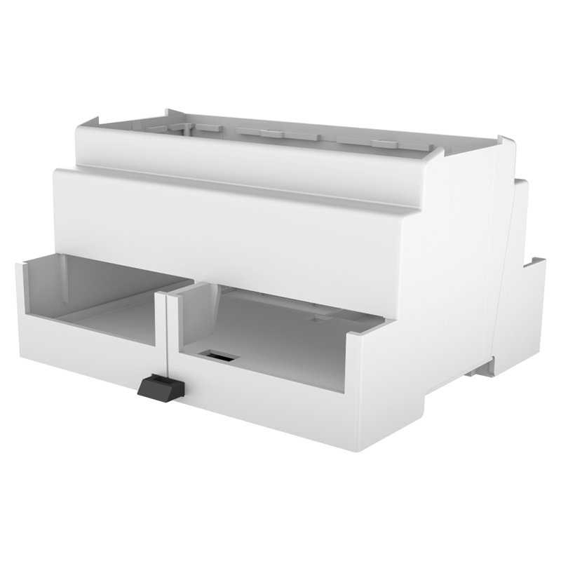 Montabile su Guida DIN (EN 60715), può essere equipaggiato con diversi coprimorsetti e vari pannelli frontali. Di tale modulo esistono diverse versioni: quelle tipo A (analoghe al precedente prodotto Modulbox di cui mantengono la compatibilità con i circuiti stampati), tipo B (con una spalla più alta per l’impiego di componenti di maggiore volume) e tipo C (con entrambe le spalle più alte per avere maggiore spazio per l’elettronica).